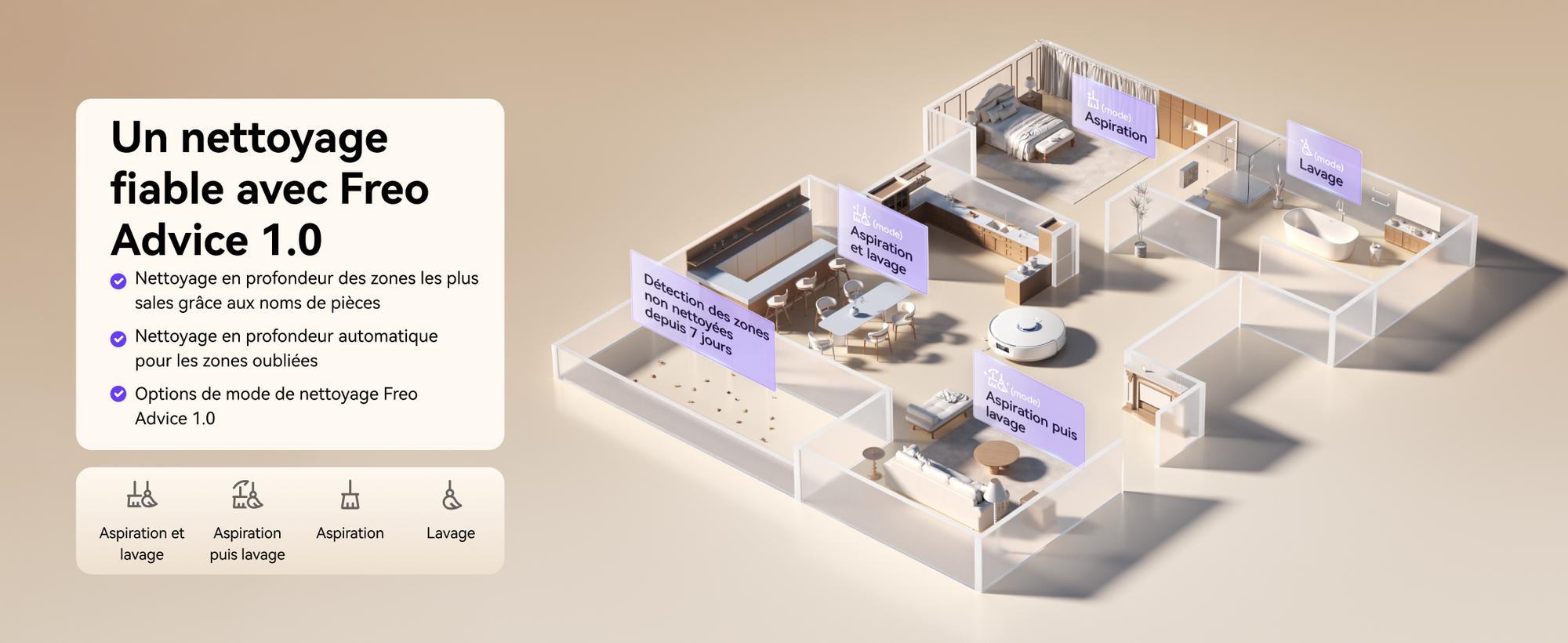 Le Narwal Freo X10 Pro est le robot aspirateur et laveur autonettoyant avec un système de serpillière triangulaire EdgeReach breveté – pour un nettoyage complet dans chaque recoin de votre intérieur. En tant qu'aspirateur robot intelligent avec 11'000 Pa de puissance d'aspiration et système sans enchevêtrement intégré, disponible exclusivement en Suisse chez Solis.
