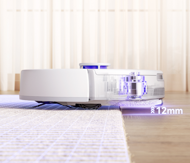 Wenn ein Teppich erkannt wird, hebt sich der Moppkopf um 12 mm¹, um Verschmutzungen zu vermeiden.