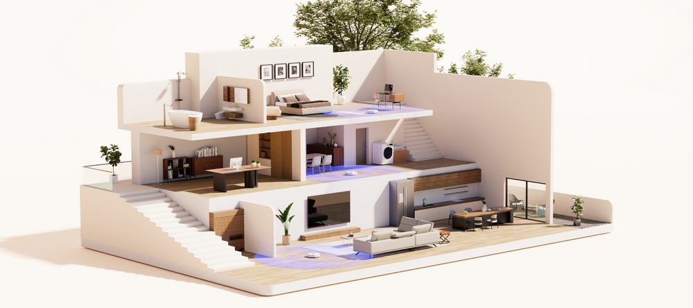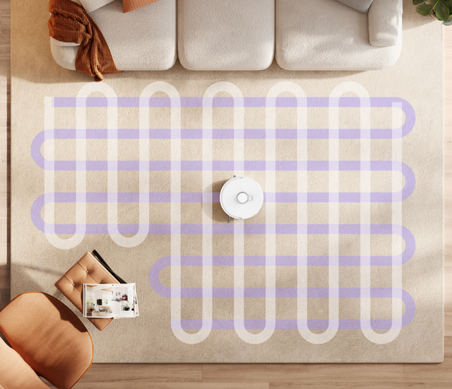 Mit einem 360°-Scan Ihres Hauses wird eine detaillierte 3D-Karte erstellt, damit die effizienteste Route gewählt werden kann.