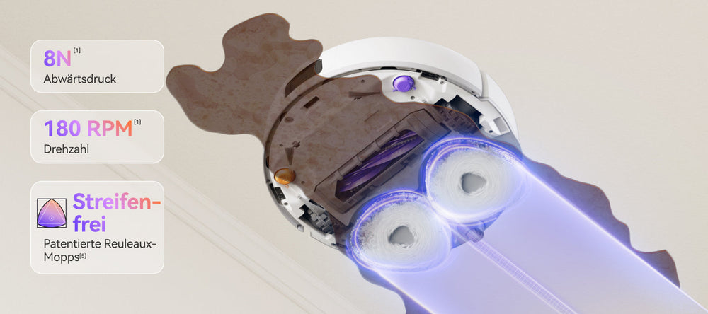 [3] Daten stammen aus internen Labortests von Narwal. Der tatsächliche Abwärtsdruck kann abhängig von der Wohnumgebung variieren.